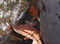 After some day's with the monk's in the forest we drive to the mountains of Thong Pha Phum and stay there in a small camp next to the road. There was nice deciduous forest on a altitude of about 700 m. Some interesting moths came to the light at night time and far away was also a forest fire. On day time we see nice bird's came to a flowering coral tree and also a snake eating a gecko.